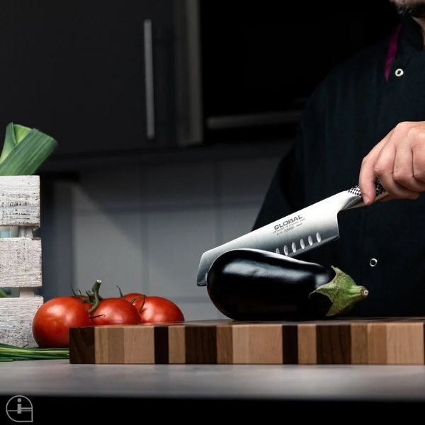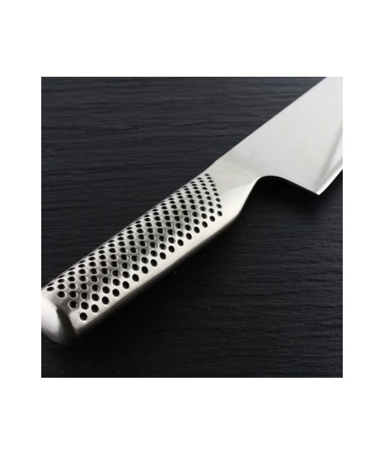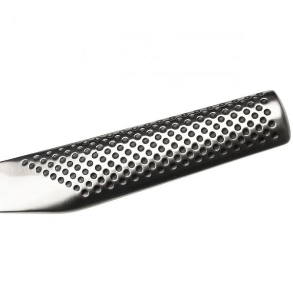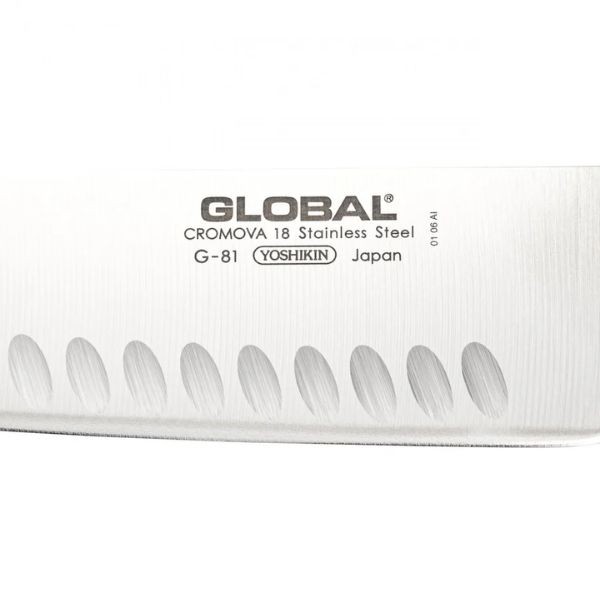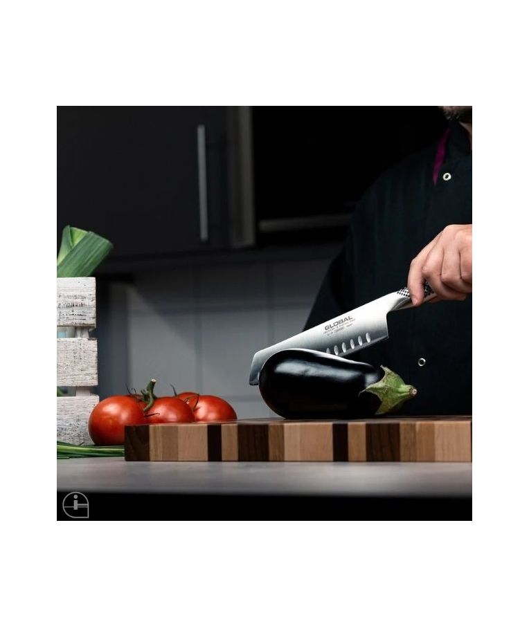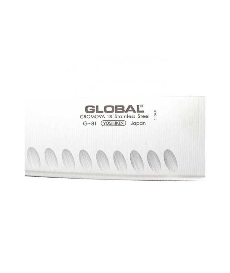 GLOBAL G-81 – tai klasikinio japoniško daržovių peilio tipo modelis su įdubusiais (fluted) ašmenimis, skirtas efektyviam ir patogiam daržovių pjaustymui. Jis puikiai tinka salotoms, svogūnams, kopūstams, agurkams ir kitoms daržovėms smulkinti. Tai ypač praktiškas pasirinkimas tiems, kurie dažnai ruošia augalinį maistą ir vertina tikslų bei švarų pjūvį.
