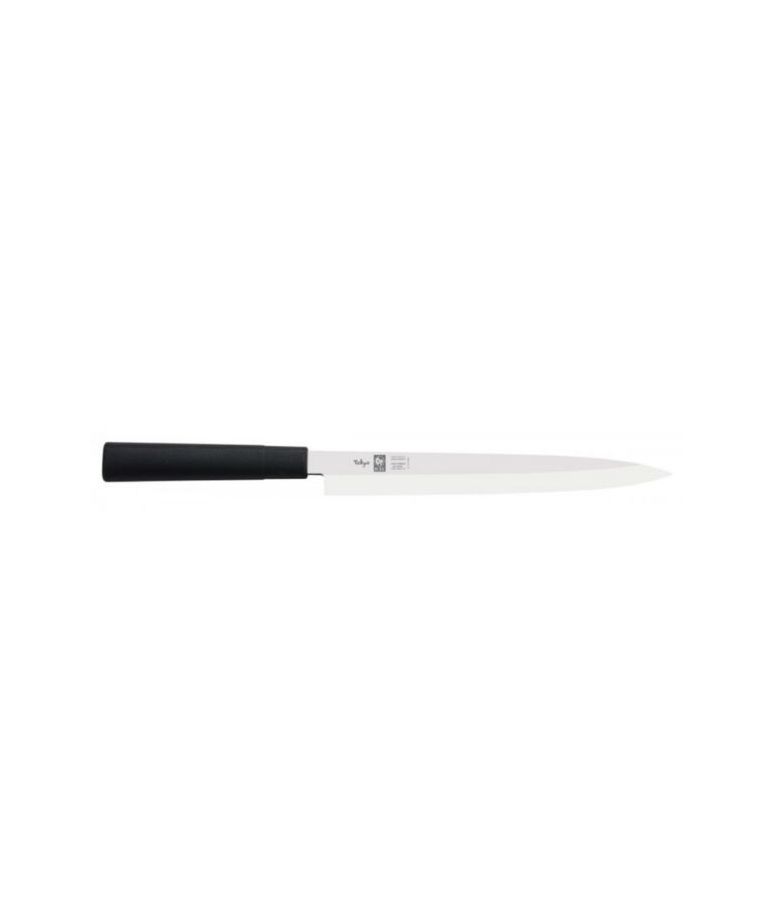 Japoniškas peilis YANAGIBA 27 cm iš TOKYO serijos – ilga, siaura ir smaili geležtė, skirta itin tiksliam žuvies pjaustymui bei plonų riekelių formavimui ruošiant sushi ir sashimi. Vienpusio galandinimo konstrukcija, pritaikyta dešiniarankiams, leidžia atlikti švarius, glotnius pjūvius, išsaugant žuvies tekstūrą ir estetiką. Japoniško stiliaus peilių serija sukurta rytietiškų patiekalų – sushi, sashimi, ramen – ruošimui, užtikrinant aukštą pjovimo tikslumą ir kontrolę. Ergonomiška Proflex Plus rankena suteikia tvirtą sukibimą ir komfortą intensyvaus darbo metu. ICEL TOKYO YANAGIBA 27 cm skirtas profesionalioms HoReCa virtuvėms ir pažengusiems namų kulinarams.