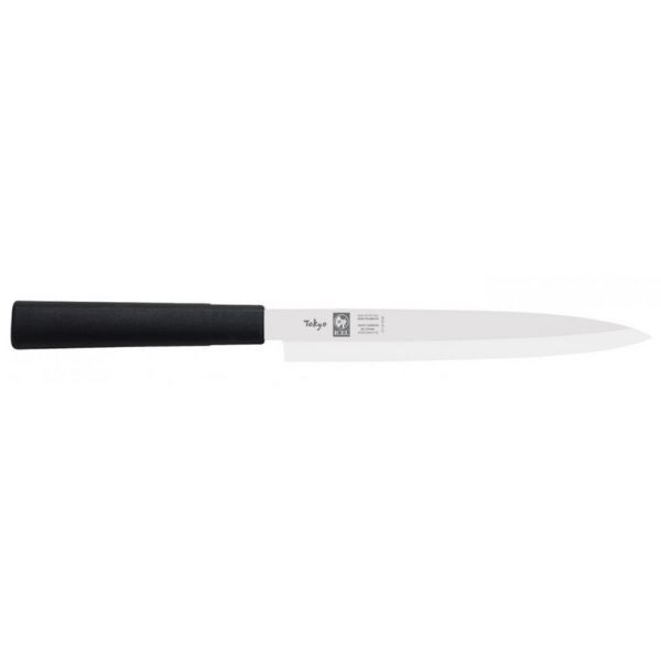 Japoniškas peilis YANAGIBA 24 cm – ilga, siaura ir smaili geležtė, skirta itin tiksliam žuvies pjaustymui bei plonų, estetiškų riekelių formavimui ruošiant sushi ir sashimi. Vienpusio galandinimo konstrukcija, pritaikyta dešiniarankiams, leidžia atlikti švarius, glotnius pjūvius, išsaugant žuvies tekstūrą ir išvaizdą. Šis peilis priklauso japoniško stiliaus peilių serijai, skirtai rytietiškų patiekalų – sushi, sashimi, ramen – ruošimui. Ergonomiška Proflex Plus rankena užtikrina patikimą sukibimą ir kontrolę intensyvaus darbo metu. ICEL YANAGIBA 24 cm peilis sukurtas profesionalioms HoReCa virtuvėms ir pažengusiems namų kulinarams.