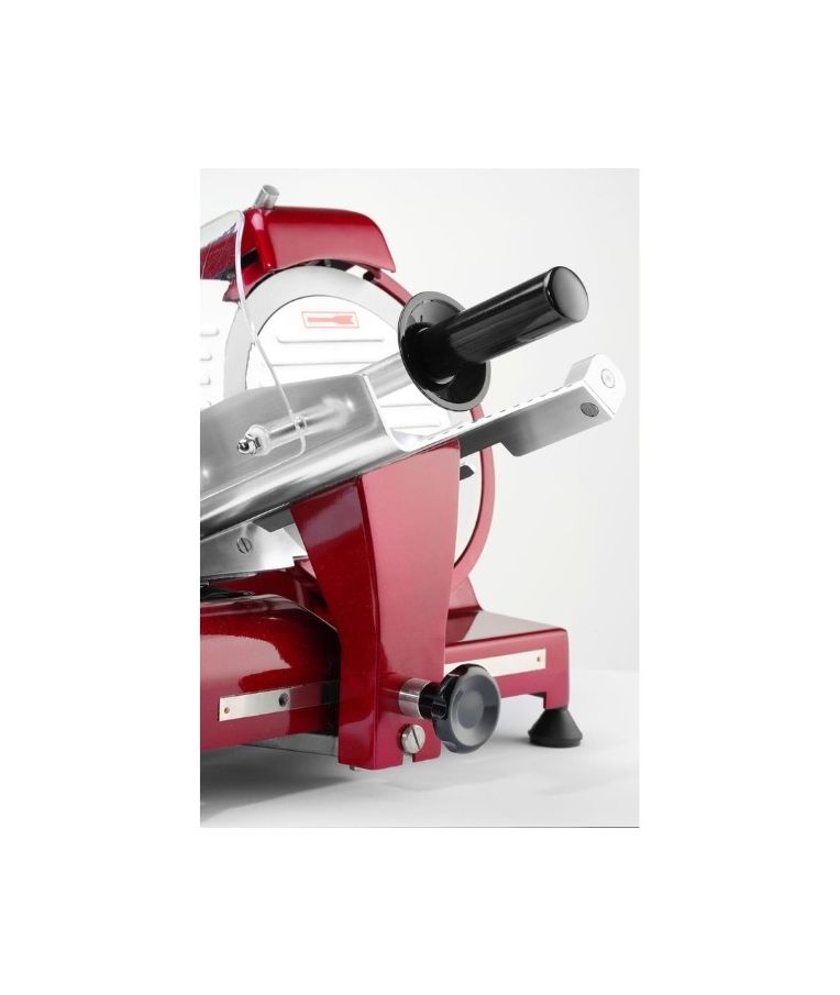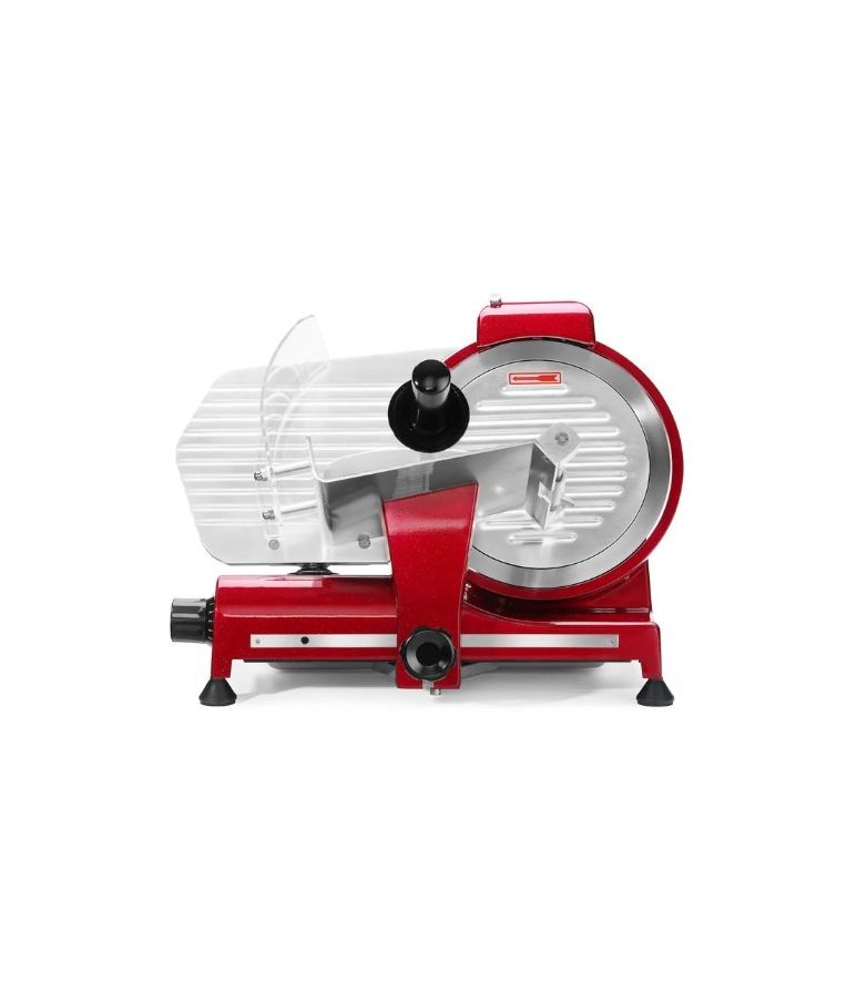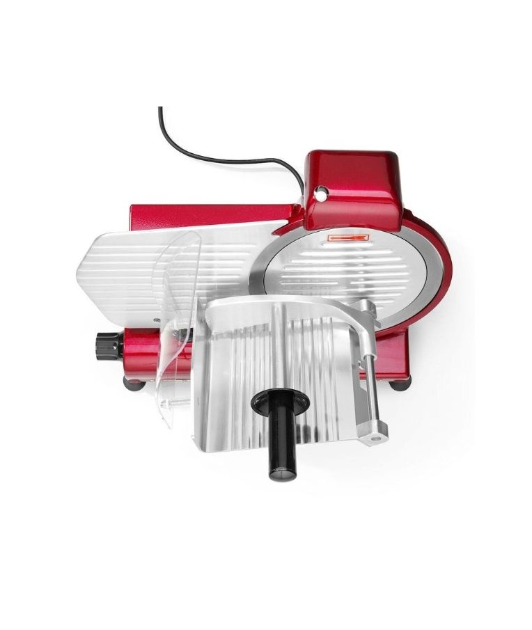 Profesionali pjaustyklė 250 Red Edition HENDI PROFI LINE – patikimas sprendimas restoranams, kavinėms, mėsos krautuvėms ir maisto gamybos įmonėms. Dengto aliuminio korpusas ir grūdinto nerūdijančio plieno ašmenys leidžia tiksliai pjaustyti net kietą mėsą. Oru aušinamas variklis su apsauga nuo perkaitimo garantuoja stabilų darbą, o tolygus griežinėlio storio reguliavimas nuo 0 iki 12 mm suteikia lankstumą skirtingiems poreikiams. Integruotas galąstuvas, vežimėlis su apsauga ir akrilo apsauginis dangtis užtikrina aukštą darbo saugą.