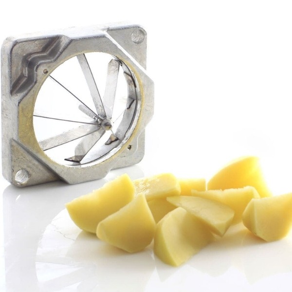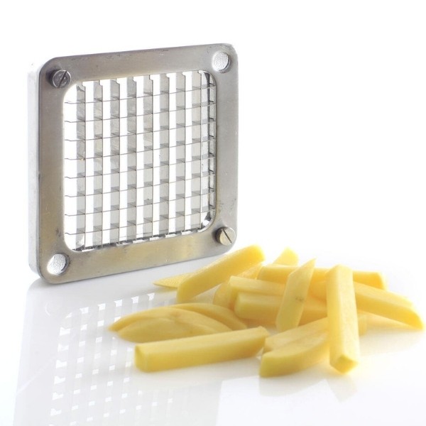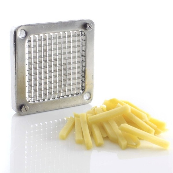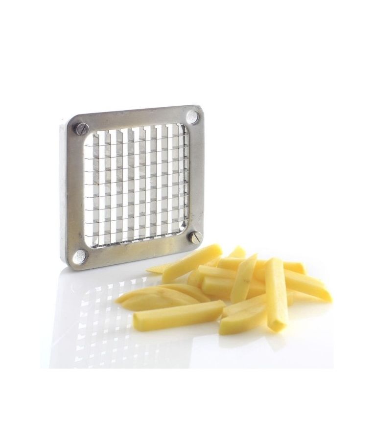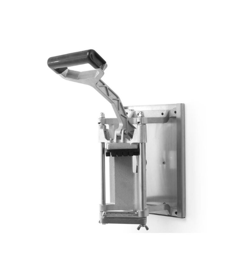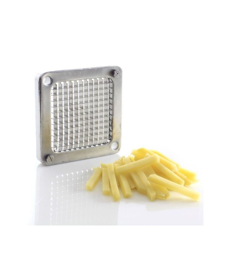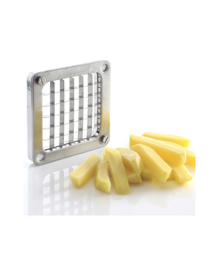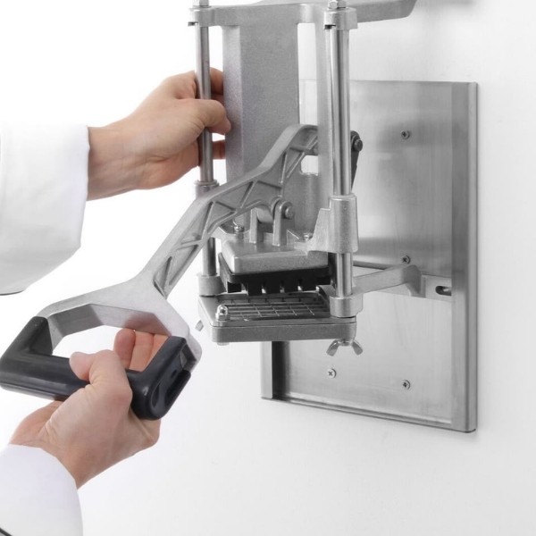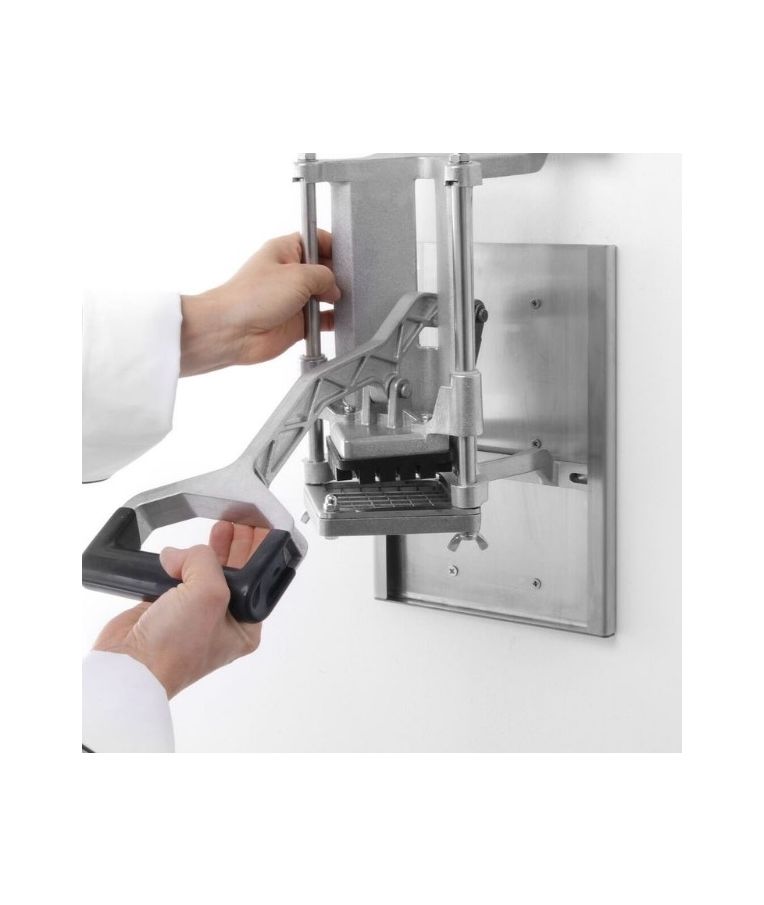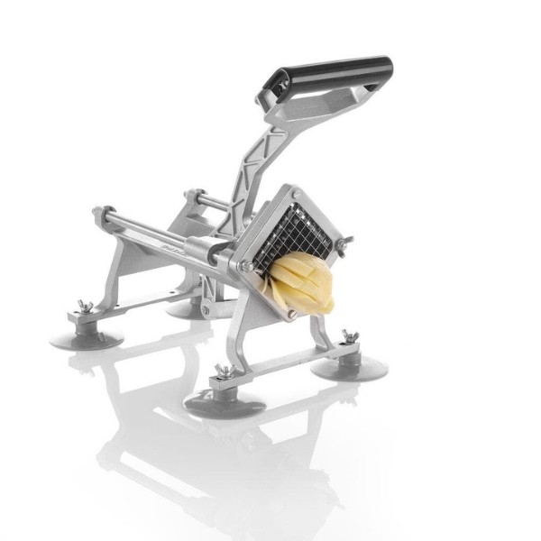 Pjaustyklė bulvėms HENDI – profesionalus sprendimas restoranams, kavinėms ir greitojo maisto virtuvėms, kur reikalingas greitas ir tikslus daržovių pjaustymas. Komplekte esantys nerūdijančio plieno peiliai leidžia pjaustyti bulves 6x6 mm, 9x9 mm ir 13x13 mm dydžio griežinėliais bei dalyti jas į 8 dalis. Stabilios kojelės su siurbtukais, ergonomiška plastiku dengta rankenėlė ir paprastas išardymas užtikrina patogų, saugų ir higienišką darbą intensyviomis sąlygomis.