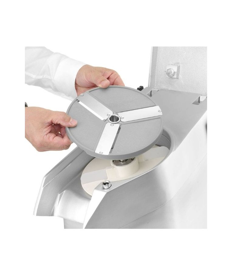 Daržovių pjaustyklė HENDI Profi Line 230 V 550 W – patikimas pasirinkimas restoranams, kavinėms ir maisto gamybos įmonėms. Galingas variklis, keli saugos mikrojungikliai ir efektyvi aušinimo sistema leidžia dirbti intensyviai ir saugiai. Komplekte esantys pjovimo diskai suteikia galimybę pjaustyti daržoves griežinėliais ir drožlėmis skirtingais storiais, o tvirta aliuminio konstrukcija garantuoja ilgaamžiškumą.