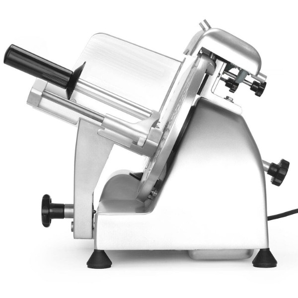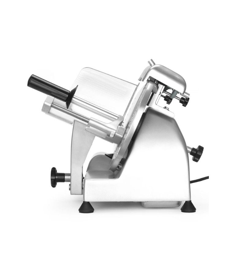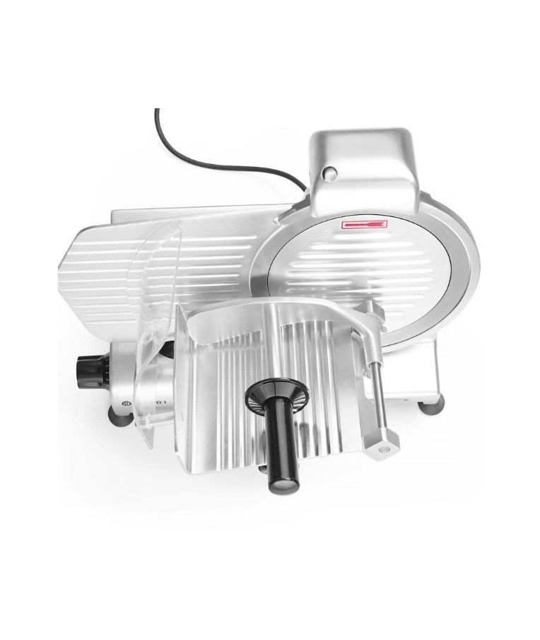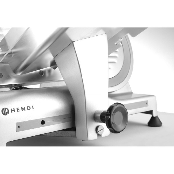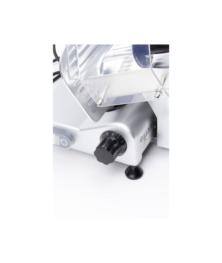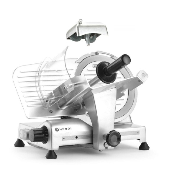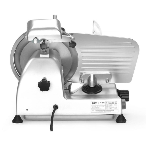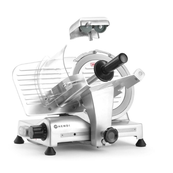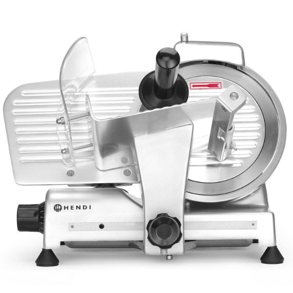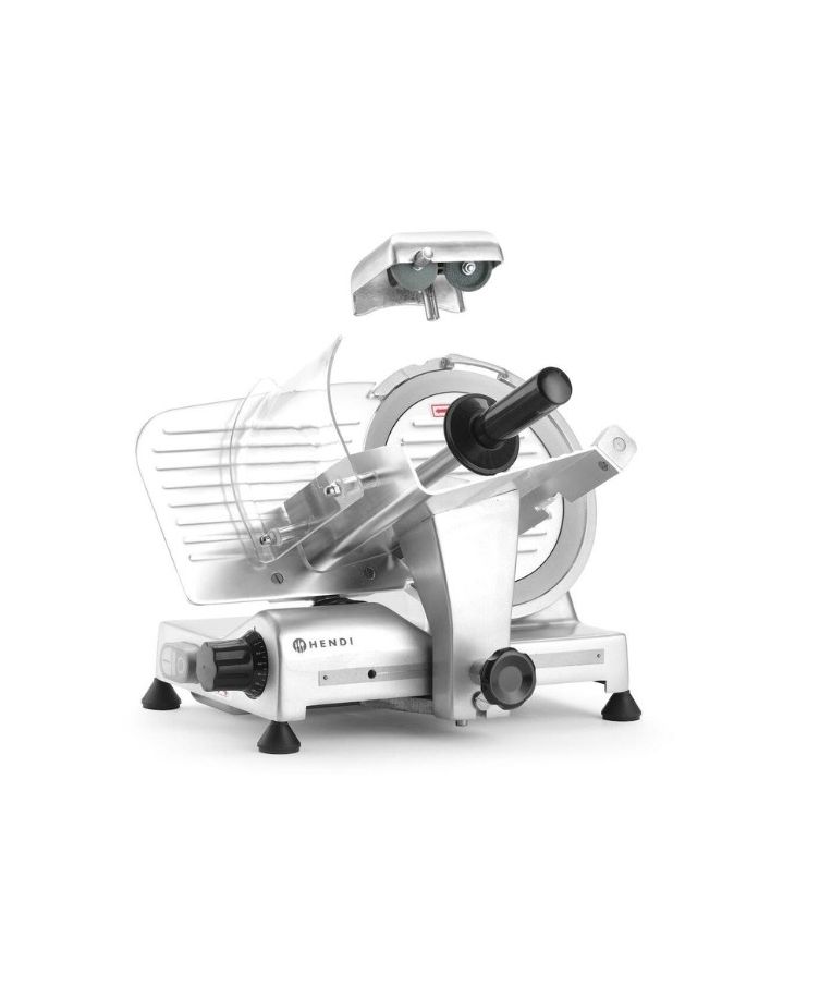 Profesionali pjaustyklė PROFI LINE 195 HENDI – patikimas sprendimas restoranams, kavinėms, mėsos krautuvėms ir maitinimo įstaigoms. Dengto aliuminio korpusas ir grūdinto nerūdijančio plieno ašmenys, išdėstyti įstrižai, užtikrina tolygų ir švarų pjūvį. Oru aušinamas variklis su apsauga nuo perkaitimo garantuoja stabilų darbą, o griežinėlio storio reguliavimas nuo 0 iki 12 mm leidžia lengvai prisitaikyti prie skirtingų produktų. Integruotas galąstuvas ir vežimėlis su apsauga padidina darbo saugumą ir patogumą.