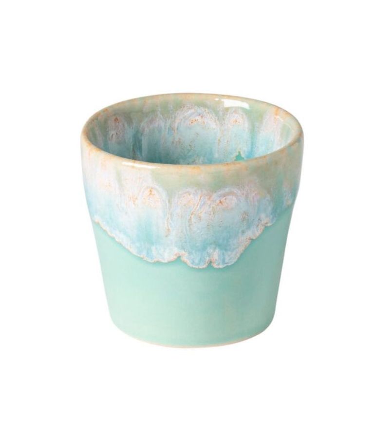 Puodelis be rankenos Grespresso Aqua 90 ml – elegantiškas Costa Nova kolekcijos espresso puodelis, įkvėptas vandenyno atspalvių ir organiškų glazūros raštų. Pagamintas iš aukštos kokybės akmens masės, jis pasižymi tvirtumu, ilgaamžiškumu ir išskirtiniu amatininkišku dizainu. 90 ml talpa idealiai tinka espresso kavai, degustaciniams gėrimams ar estetiškam stalo pateikimui HoReCa sektoriuje ir namuose. Aqua spalva suteikia puodeliui gaivumo ir unikalumo, todėl jis tampa ne tik funkcionaliu, bet ir dekoratyviniu akcentu.