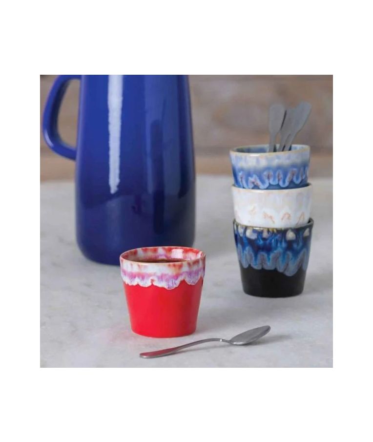 Puodelis be rankenos Grespresso Denim 90 ml – išskirtinis Costa Nova kolekcijos espresso puodelis, išsiskiriantis į vandenyno bangas panašiais raštais ir sodria mėlyna glazūra. Pagamintas iš aukštos kokybės akmens masės, jis pasižymi tvirtumu, ilgaamžiškumu ir amatininkišku charakteriu, būdingu visai Grespresso linijai. 90 ml talpa idealiai tinka espresso kavai, degustaciniams gėrimams ar stilingam serviravimui HoReCa aplinkoje ir namuose. Denim spalva suteikia puodeliui modernumo, gylio ir išskirtinumo, todėl tai puikus pasirinkimas ieškantiems ne tik funkcionalumo, bet ir estetinio akcento.