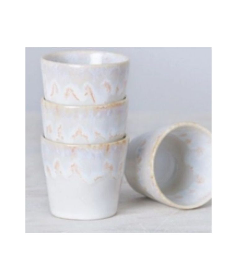 Puodelis be rankenos Grespresso Grey 90 ml – elegantiškas ir modernus Costa Nova kolekcijos indas, išsiskiriantis subtiliu pilkos glazūros raštu, įkvėptu natūralių vandenyno tonų. Pagamintas iš aukštos kokybės akmens masės, pasižymi tvirtumu, ilgaamžiškumu ir amatininkišku charakteriu, būdingu visai Grespresso linijai. 90 ml talpa idealiai pritaikyta espresso kavai, degustaciniams gėrimams ar dekoratyviniam panaudojimui. Neutralus pilkas atspalvis lengvai dera su įvairiais stiliaus indais ir puikiai tinka tiek HoReCa aplinkai, tiek namų virtuvei.