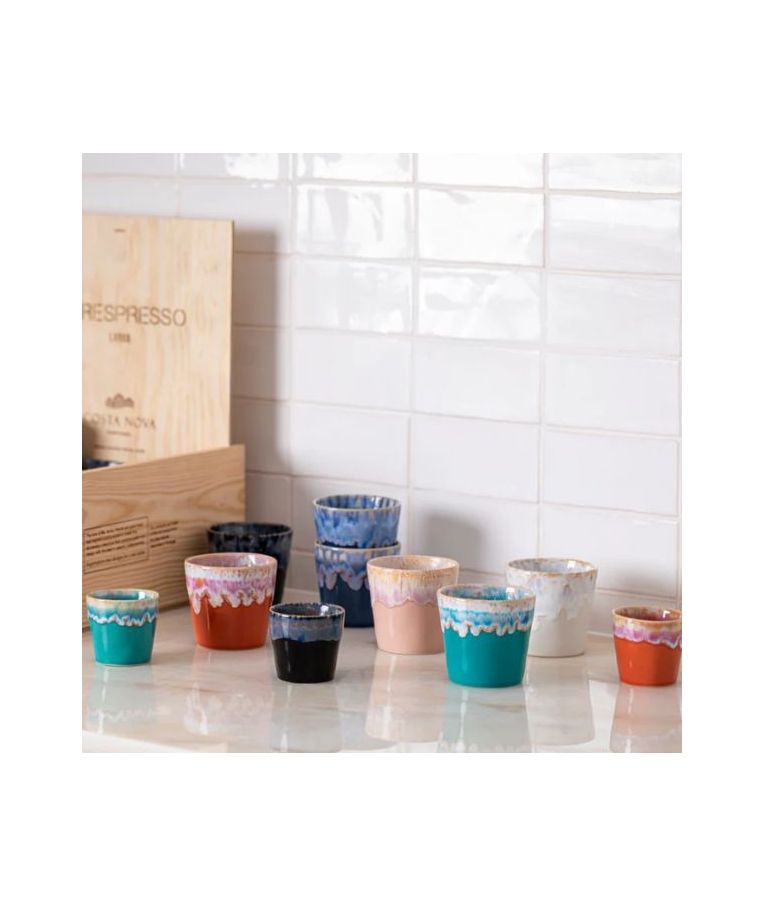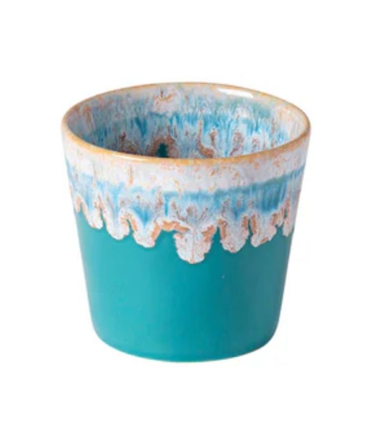 Puodelis be rankenos GRESPRESSO Turquoise 210 ml – gaivaus turkio atspalvio „Costa Nova“ akmens masės gaminys, išsiskiriantis kruopščia glazūra ir rankų darbo įspūdį kuriančiu paviršiumi. Smulkintos akmens masės sudėtis suteikia puikų atsparumą termošokui, todėl puodelį galima naudoti orkaitėje, mikrobangų krosnelėje, šaldiklyje ir indaplovėje. Dėl savo patvarumo ir universalaus dizaino jis puikiai tinka tiek profesionaliam HoReCa naudojimui, tiek kasdieniam naudojimui namuose. Puodelis pagamintas iš tarptautinius standartus atitinkančių, maistui saugių medžiagų.