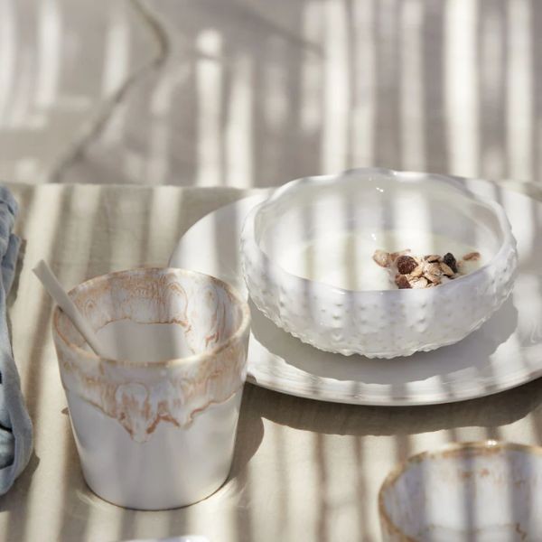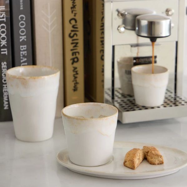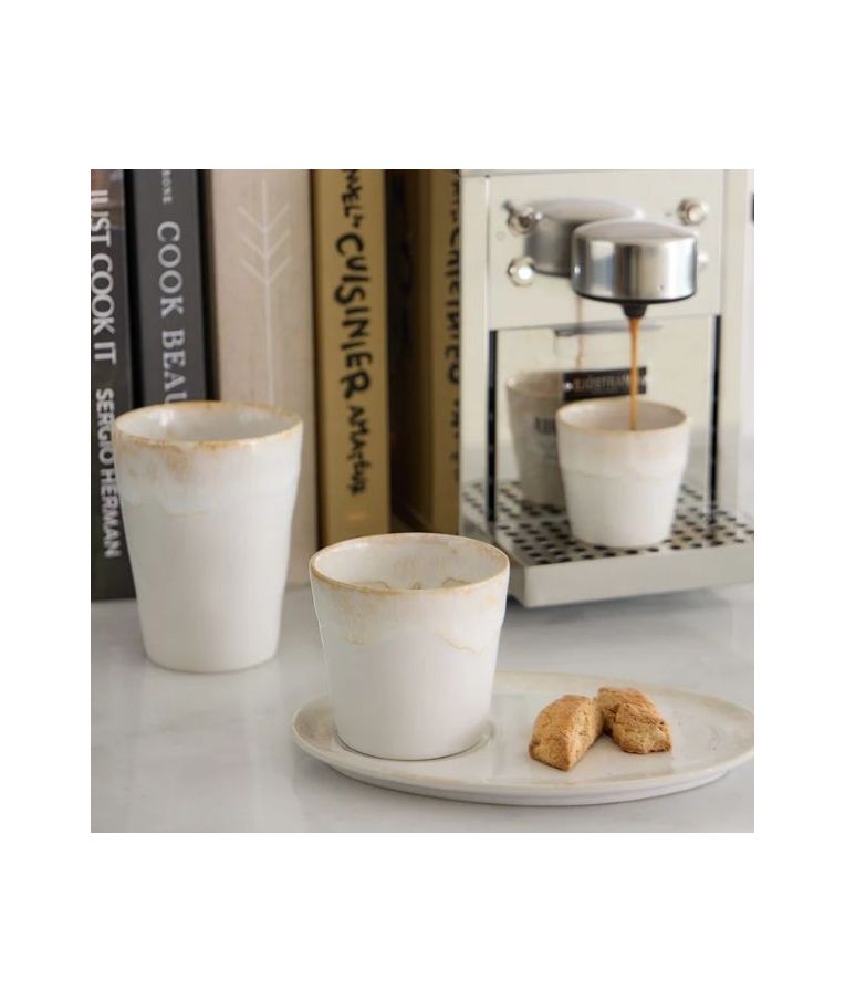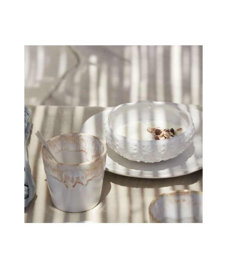 Puodelis be rankenos GRESPRESSO White 210 ml – tai elegantiškas ir universalaus dizaino „Costa Nova“ akmens masės gaminys, išsiskiriantis švaria balta spalva bei subtiliu glazūros efektu. Pagamintas iš itin patvarios smulkintos akmens masės, jis atsparus termošokui ir tinkamas naudoti orkaitėje, mikrobangų krosnelėje, šaldiklyje bei indaplovėje. Dėl savo minimalistinio stiliaus ir funkcionalumo puodelis puikiai dera tiek profesionaliose HoReCa erdvėse, tiek kasdienėje namų aplinkoje. Pagamintas iš maistui saugių medžiagų, atitinkančių tarptautinius kokybės standartus.