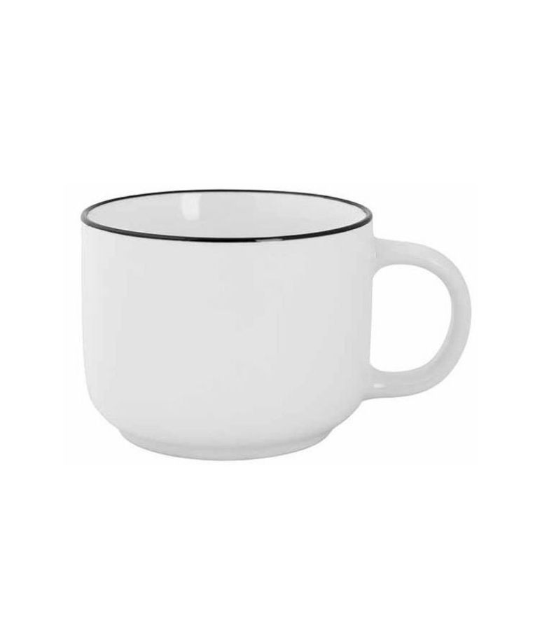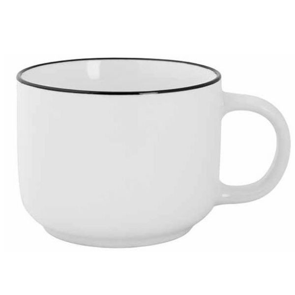 Puodelis RENEE 480 ml – tai talpus ir elegantiškas porcelianinis puodelis, tinkantis tiek namų, tiek HoReCa aplinkai. Apvalios formos dizainas ir klasikinė balta spalva, subtiliai pabrėžta juodu apvadu, suteikia puodeliui modernų, tačiau laikui nepavaldų stilių.