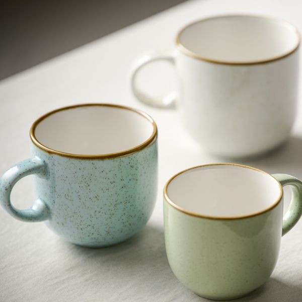 Puodelis Stonecast Duck Egg Blue 280 ml išsiskiria subtiliu dizainu ir natūraliais atspalviais, įkvėptais sezoninių ingredientų. Rankų darbo efektas, švelniai taškuota glazūra ir aukso atspalvio kraštelis suteikia puodeliui išskirtinumo. Pagamintas iš kokybiškos keramikos, puikiai tinka tiek profesionaliam HoReCa naudojimui, tiek kasdieniam namų stalui.