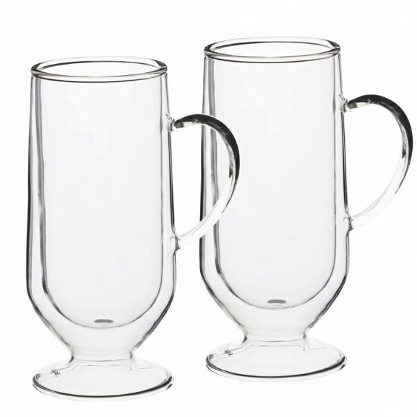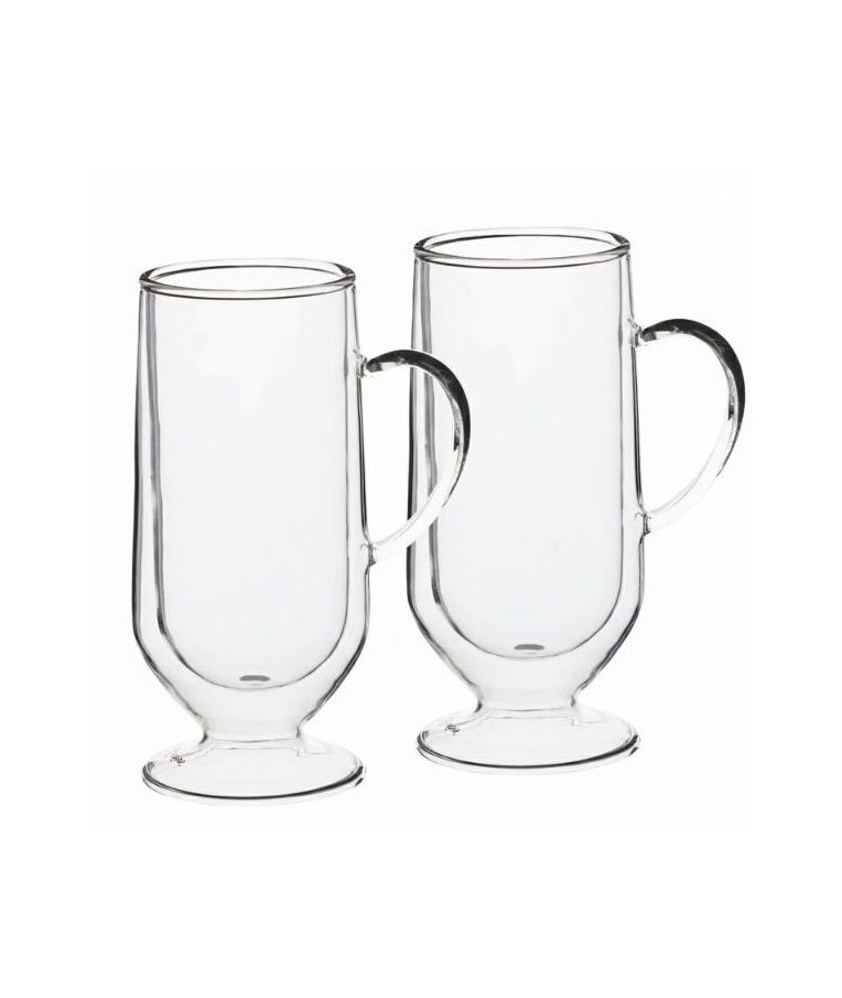 Termo puodeliai Irish Coffee (2 vnt.) – elegantiški, dvigubo stiklo puodeliai, skirti išlaikyti jūsų gėrimų šilumą ilgiau. Puikiai tinka kavos, latte, kapučino ar Irish Coffee patiekimui. Dvigubo stiklo konstrukcija apsaugo rankas nuo karščio, o skaidrus dizainas suteikia stalo serviravimui modernumo ir lengvumo. Aukštos kokybės stiklas užtikrina atsparumą temperatūrų pokyčiams ir ilgaamžiškumą.