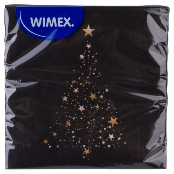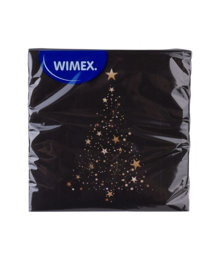 Trisluoksnės Wimex Kalėdinės servetėlės 33x33 cm (20 vnt.) – stilingas šventinio stalo akcentas. Juodos spalvos pagrindas su auksinės eglutės ir žvaigždučių motyvu suteikia elegancijos bei prabangos pojūtį. Pagamintos iš kokybiško popieriaus, šios servetėlės yra tvirtos, malonios liesti ir puikiai dera prie modernių bei klasikinių Kalėdų dekoracijų. Idealios šventinei vakarienei, biuro šventėms ar jaukiam šeimos pasibuvimui.