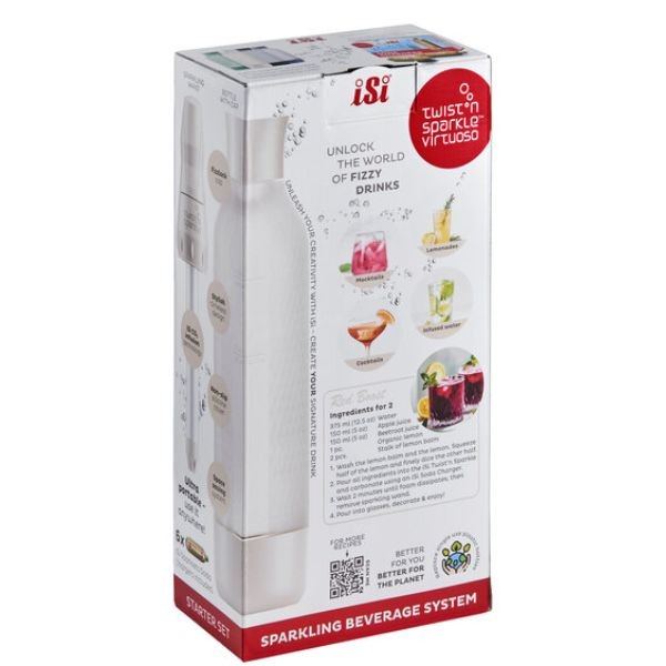 Universalus sifonas gėrimams iSi Twist’N Sparkle Virtuoso 0.95 l – gazuokite vandenį, sultis ir kitus šaltus gėrimus. Patvarus PET plastikas, modernus dizainas, ilgai išliekanti karbonizacija.