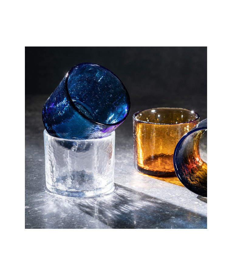 Stiklinė ZORA Blue 210 ml – moderni ir išskirtinė stiklinė, pasižyminti subtilia „hammered“ (kalto stiklo) tekstūra bei sodria mėlyna spalva. Unikalus paviršius suteikia vizualinį gylį ir eleganciją, todėl ši stiklinė puikiai tinka kūrybiškam gėrimų pateikimui. Ideali vandeniui, aperityvams, kokteiliams ar mažoms užkandžių porcijoms. Kompaktiška talpa ir patvari konstrukcija leidžia ją naudoti tiek namuose, tiek profesionalioje HoReCa aplinkoje – restoranuose, baruose ar viešbučiuose. Galima plauti indaplovėje, todėl užtikrinamas patogus kasdienis naudojimas.