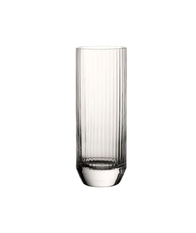 Stiklinė BIG TOP NUDE 300 ml – išskirtinio dizaino stiklinė su masyviu, kampuotu dugnu ir dekoratyviomis vertikaliomis briaunomis, kurios laužia šviesą ir suteikia vintažinio „cut-glass“ stiliaus efektą. 300 ml talpa puikiai tinka vandeniui, gaiviesiems gėrimams, sultims ar kokteiliams patiekti. Tvirta konstrukcija ir subalansuotos proporcijos užtikrina patogų laikymą bei ilgaamžiškumą intensyvaus naudojimo sąlygomis. Stiklinė puikiai tinka tiek HoReCa sektoriui, tiek namų naudojimui, kai vertinamas funkcionalumo ir estetikos derinys.