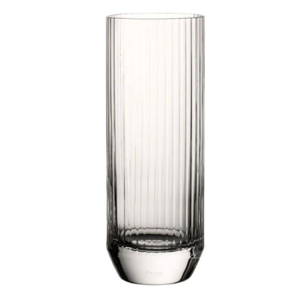Stiklinė BIG TOP NUDE 300 ml – išskirtinio dizaino stiklinė su masyviu, kampuotu dugnu ir dekoratyviomis vertikaliomis briaunomis, kurios laužia šviesą ir suteikia vintažinio „cut-glass“ stiliaus efektą. 300 ml talpa puikiai tinka vandeniui, gaiviesiems gėrimams, sultims ar kokteiliams patiekti. Tvirta konstrukcija ir subalansuotos proporcijos užtikrina patogų laikymą bei ilgaamžiškumą intensyvaus naudojimo sąlygomis. Stiklinė puikiai tinka tiek HoReCa sektoriui, tiek namų naudojimui, kai vertinamas funkcionalumo ir estetikos derinys.