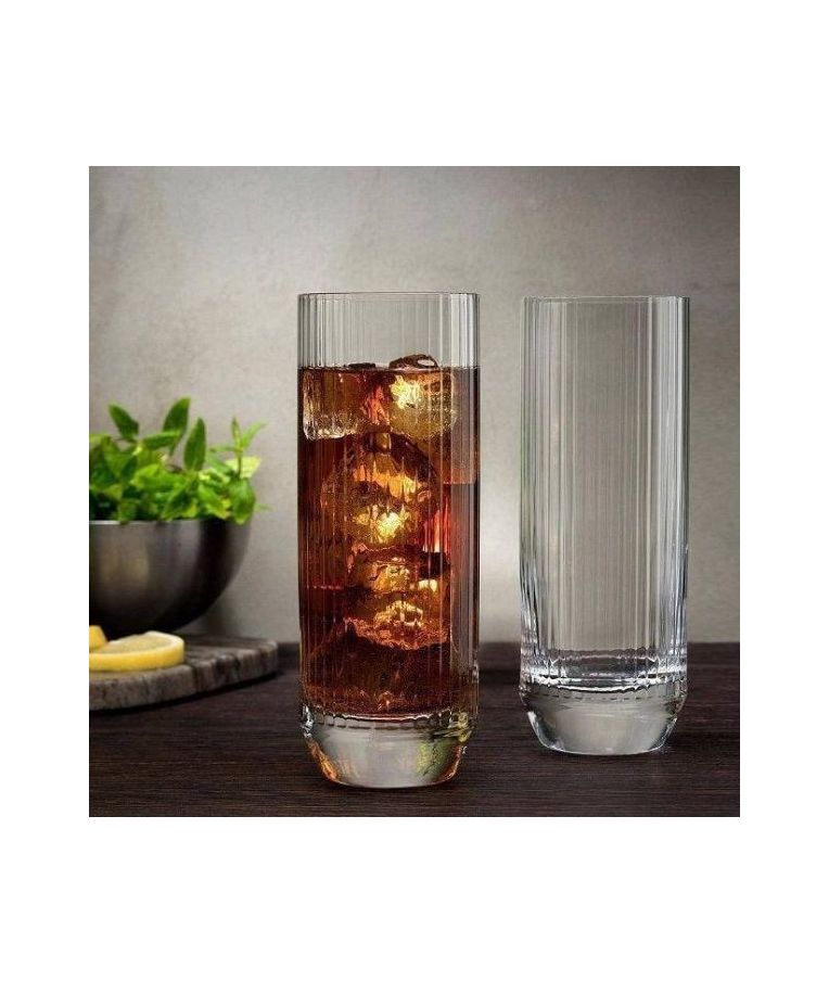 Stiklinė BIG TOP NUDE 430 ml – išraiškingo dizaino hiball tipo stiklinė, pasižyminti masyviu, kampuotu dugnu ir vertikaliomis briaunomis, kurios gražiai laužia šviesą ir suteikia vintažinio charakterio. Subtilus „cut-glass“ stiliaus raštas išryškina gėrimų pateikimą ir suteikia stalui elegancijos. 430 ml talpa idealiai tinka kokteiliams, long drink gėrimams, sultims, limonadams ar gazuotiems gėrimams patiekti. Tvirta konstrukcija ir patogus dydis leidžia stiklę naudoti tiek HoReCa sektoriuje, tiek namų aplinkoje, kur vertinamas dizaino ir funkcionalumo derinys.