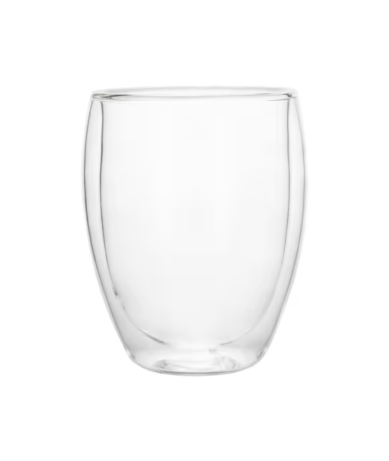 Dvigubos sienelės konstrukcija užtikrina efektyvią šilumos izoliaciją – gėrimai ilgiau išlaiko savo temperatūrą, o stiklinės išorė išlieka maloni liesti. 350 ml talpa idealiai tinka latte, cappuccino, arbatai ar kitiems didesnės apimties gėrimams.