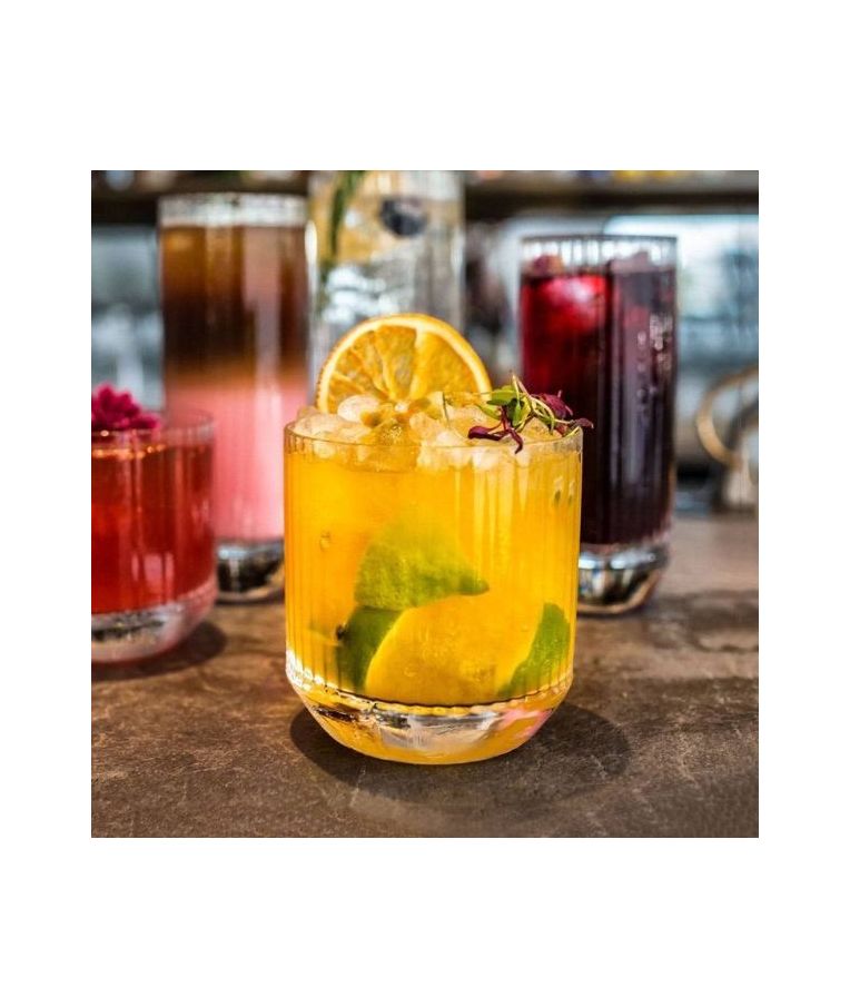 Stiklinė viskiui DOF BIG TOP NUDE 320 ml – išraiškingo dizaino „double old fashioned“ tipo stiklinė su masyviu, kampuotu dugnu ir dekoratyviomis vertikaliomis briaunomis, kurios gražiai laužia šviesą ir suteikia vintažinio stiliaus akcentą. 320 ml talpa idealiai tinka viskiui, burbonui, romui ar kitiems stipriesiems gėrimams, taip pat kokteiliams su ledu. Subalansuotos proporcijos užtikrina patogų laikymą, o tvirta konstrukcija leidžia naudoti tiek HoReCa sektoriuje, tiek namų bare, kuriant išskirtinį gėrimų pateikimą.