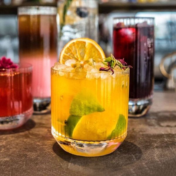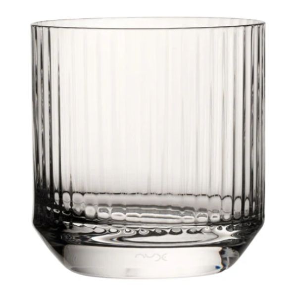 Stiklinė viskiui DOF BIG TOP NUDE 320 ml – išraiškingo dizaino „double old fashioned“ tipo stiklinė su masyviu, kampuotu dugnu ir dekoratyviomis vertikaliomis briaunomis, kurios gražiai laužia šviesą ir suteikia vintažinio stiliaus akcentą. 320 ml talpa idealiai tinka viskiui, burbonui, romui ar kitiems stipriesiems gėrimams, taip pat kokteiliams su ledu. Subalansuotos proporcijos užtikrina patogų laikymą, o tvirta konstrukcija leidžia naudoti tiek HoReCa sektoriuje, tiek namų bare, kuriant išskirtinį gėrimų pateikimą.