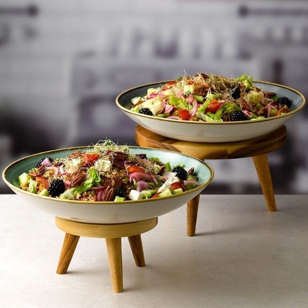 Medinis stovas Alchemy 10 × 15 cm sukurtas estetiškai ir funkcionaliai pakelti maisto pateikimą bufetuose, vitrinose ar ant serviravimo stalų. Pagamintas iš natūralaus, iš atsinaujinančių šaltinių gaunamo kietmedžio, jis suteikia šilumos, tekstūros ir aukščio bendram stalo vaizdui. Atspari dėmėms ir intensyviam naudojimui apdaila užtikrina ilgaamžiškumą bei reprezentatyvią išvaizdą net ir didelio srauto HoReCa aplinkoje. Stovas lengvai derinamas su įvairiais keramikos, medžio ar melamino serviravimo elementais, leidžiant kurti vientisą, profesionalų maisto pateikimą – nuo klasikinio viešbučio bufeto iki modernaus verslo renginio ar jaukios namų šventės.