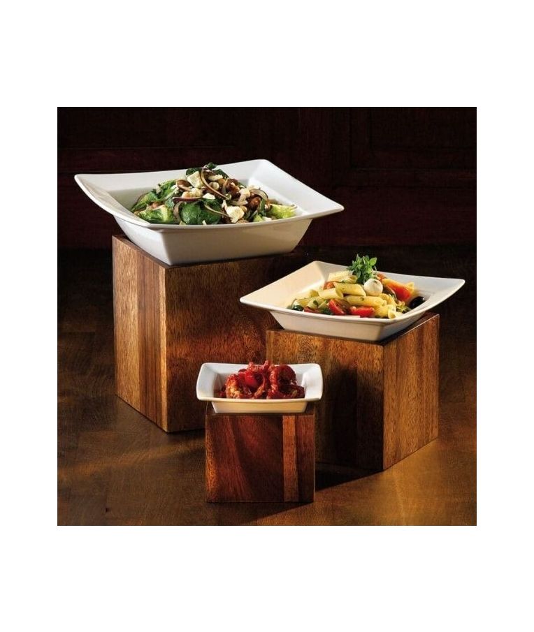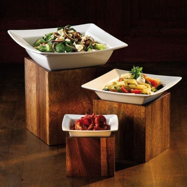 Churchill Alchemy serijos medinis bufeto stovas CUBE – funkcionalus ir estetiškas sprendimas profesionaliam maisto pateikimui. Kubinės formos stovas, pagamintas iš natūralios kietmedžio medienos, suteikia bufetui aukščio, struktūros ir vizualinio išskirtinumo.