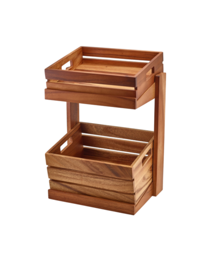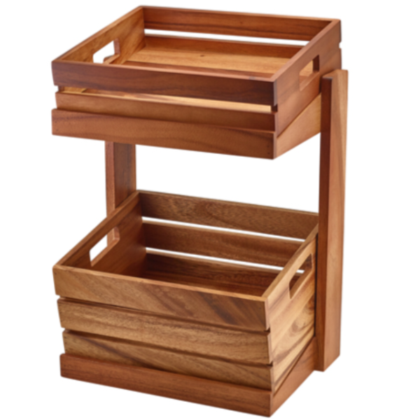 Stovas medinis, dviejų dalių GN 1/2 – tai praktiškas ir estetiškas sprendimas profesionaliam maisto pateikimui HoReCa sektoriuje ir namuose. Pagamintas iš aukštos kokybės akacijos medienos, šis stovas pasižymi tvirtumu, ilgaamžiškumu ir natūraliu, šiltu dizainu, kuris puikiai papildo bufeto ar stalo serviravimą.