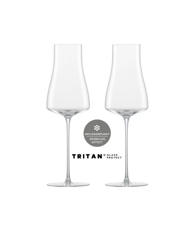 Aukštos kokybės, rafinuoto dizaino taurės, pagamintos naudojant pažangią Zwiesel stiklo technologiją, kuri užtikrina atsparumą įbrėžimams, skaidrumą ir ilgalaikį blizgesį. 312 ml talpa ir elegantiškas taurės siluetas yra specialiai sukurti tam, kad būtų išlaikomi smulkūs šampano burbuliukai, o švelniai siaurėjanti forma padėtų koncentruoti aromatus. Tai leidžia kiekvieną akimirka paversti subtilia degustacijos patirtimi. Taurės unikalus dizainas puikiai dera tiek šventiniam stalui, tiek moderniam minimalizmui. Dėl savo tvirtumo jos tinkamos ne tik namams, bet ir profesionaliam restoranų bei viešbučių naudojimui.