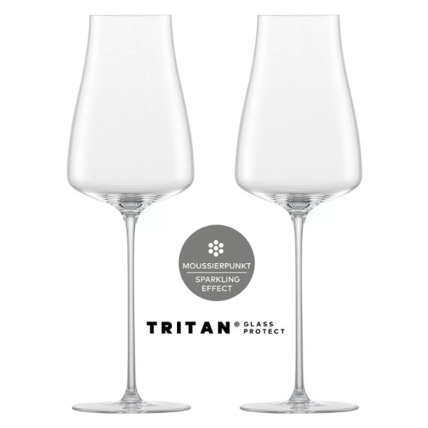 Aukštos kokybės, profesionalios klasės taurės, išsiskiriančios ypatingu skaidrumu, elegantiška forma ir Zwiesel gamintojui būdingu tvirtumu. 369 ml talpa suteikia daugiau erdvės aromatams atsiskleisti, todėl taurės puikiai tinka tiek klasikinio šampano, tiek prosecco, cava ar kitų putojančių gėrimų degustacijai. Švelniai siaurėjanti forma padeda išlaikyti burbuliukų smulkią tekstūrą, o patogi kojelė užtikrina patogų laikymą. Zwiesel stiklas pasižymi ilgaamžiškumu, atsparumu įbrėžimams ir išlaiko savo skaidrumą net esant intensyviam naudojimui – todėl taurės tinkamos ir kasdienai, ir profesionaliam restoranų naudojimui.
