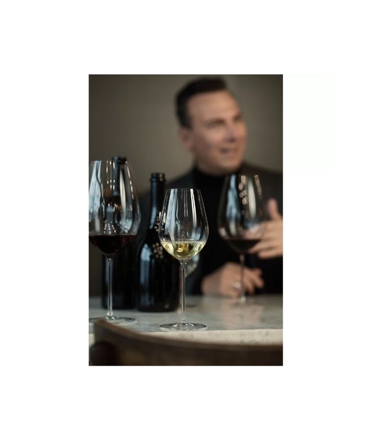 Taurės forma su plačia apačia ir švelniai siaurėjančiu viršumi užtikrina optimalų vyno aeravimą ir aromatų koncentraciją. Plona, grakšti kojelė ir tobulas balansas suteikia elegantišką, profesionalią laikyseną.