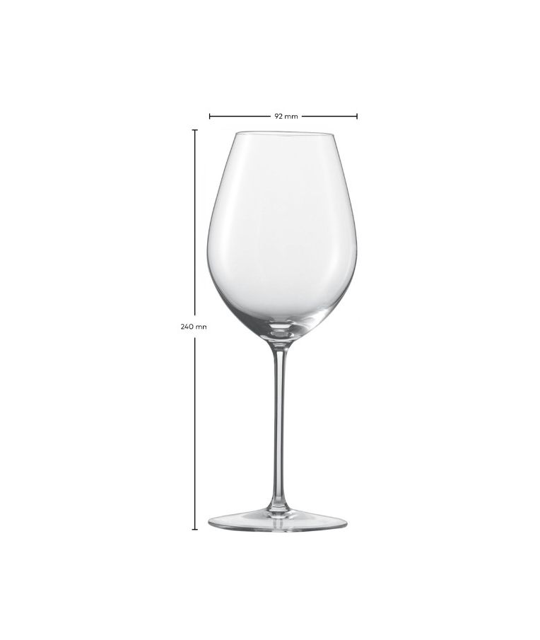 Aukštos kokybės taurės, sukurtos vyno mėgėjams ir profesionalams, vertinantiems funkcionalumą, estetiką ir rafinuotą dizainą. ENOTECA kolekcija išsiskiria kruopščiai suformuotu siluetu, kuriame dera elegancija, subtilumas ir puikus balansas. 553 ml talpa yra universali ir itin tinkama aromatingiems baltiesiems vynams, rožiniams vynams ir vidutinio kūno raudoniesiems vynams. Taurės forma – plačiai atsiverianti apačia ir viršuje švelniai siaurėjantis kraštas – leidžia vynui kvėpuoti ir koncentruoti aromatus. Pagamintos iš ypatingai tvirto, skaidraus Zwiesel stiklo, taurės pasižymi atsparumu įbrėžimams, ilgaamžiškumu ir nepriekaištingu blizgesiu. Plona, grakšti kojelė suteikia taurėms lengvumo ir prabangos įspūdį, o ergonomiška forma užtikrina patogų laikymą.