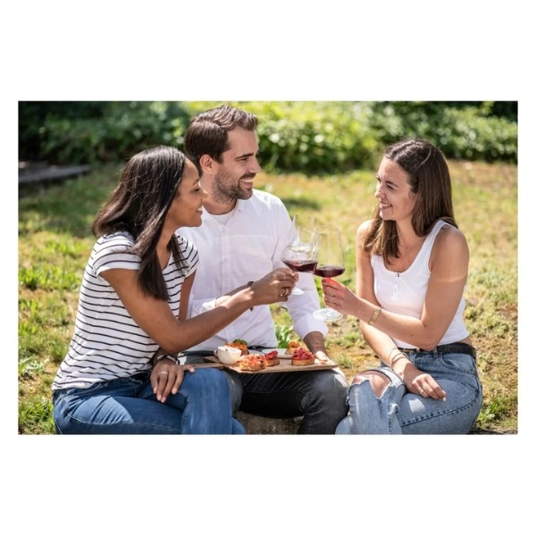 Ispūdingo dydžio, modernios formos ir aukštos kokybės stiklo taurės, sukurtos išryškinti vyno aromatų bei skonio kompleksiškumą. Didelė talpa leidžia vynui maksimaliai „atsiskleisti“, o plati taurės forma suteikia pakankamai vietos deguonies sąveikai – tai ypač svarbu brandintiems, intensyviems ar aromatingiems vynams.