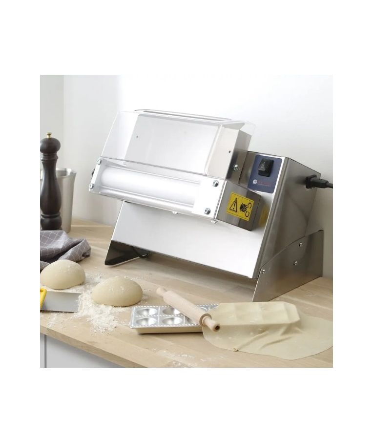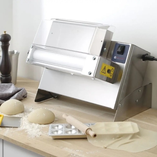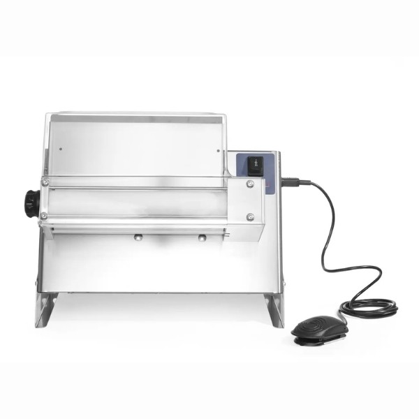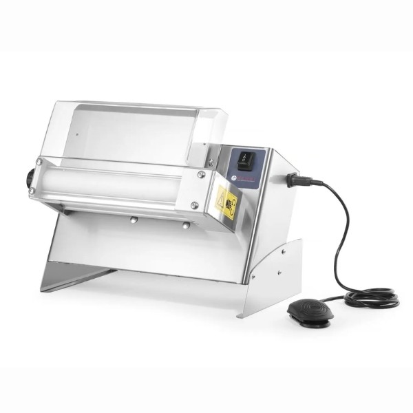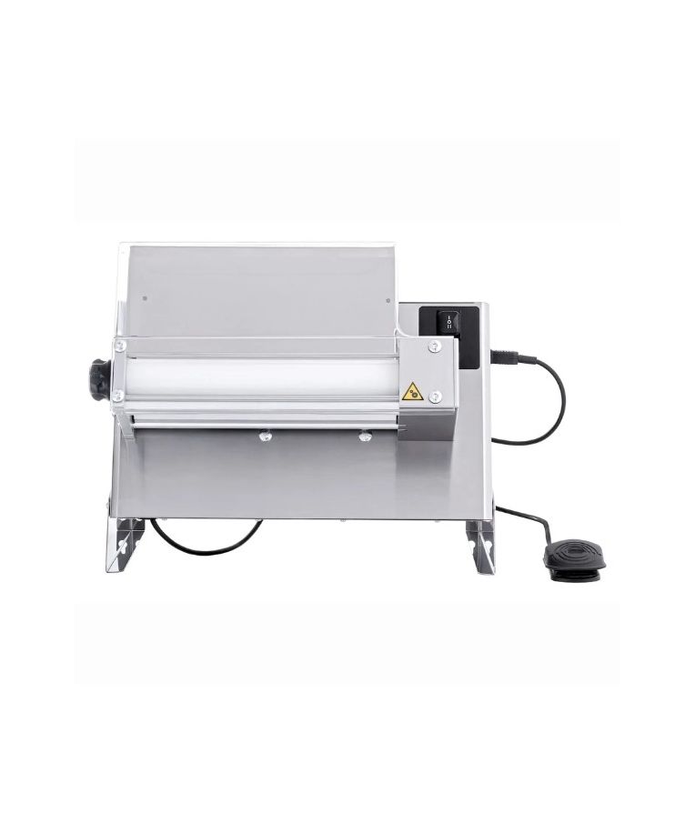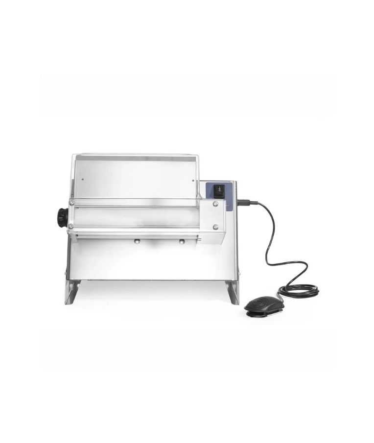 Elektrinis tešlos kočiojimo įrenginys PRISMAFOOD 300 – profesionalus sprendimas HORECA sektoriui, skirtas greitam ir tiksliam tešlos paruošimui. Du reguliuojamų volų rinkiniai leidžia formuoti vienodo storio tešlos lakštą nuo 0 iki 4 mm, o grandininė pavara ir alyvos vonelėje veikiantis reduktorinis variklis užtikrina tylų ir sklandų darbą. Įrenginys idealiai tinka šaltai tešlai, nes darbo metu jos neperkaitina. Integruotas laikmatis ir užrakinami ratukai padidina naudojimo patogumą bei mobilumą profesionalioje virtuvėje.