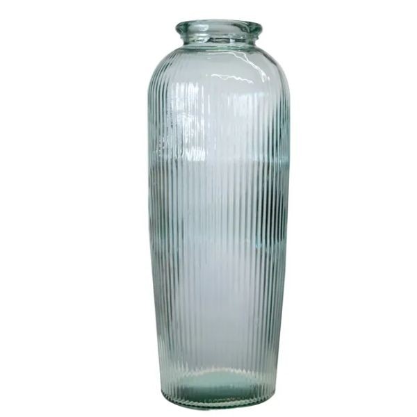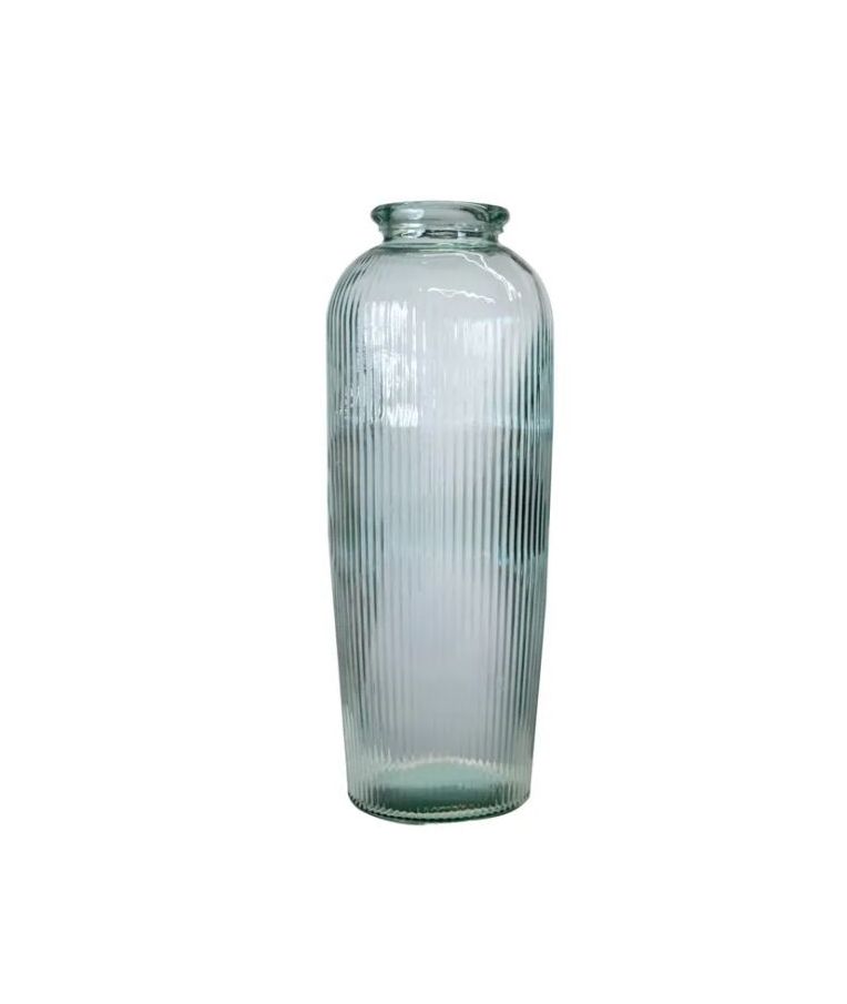 Vaza DAROCA 70 cm – įspūdingo aukščio stiklinė dekoracija, išsiskirianti elegantiška forma ir subtiliu vertikaliu raštu. Skaidrus stiklas švelniai atspindi šviesą, todėl ši vaza tampa išraiškingu interjero akcentu tiek namuose, tiek HoReCa erdvėse. Puikiai tinka didelėms gėlių kompozicijoms ar kaip savarankiška dizaino detalė, suteikianti prabangos ir erdvės pojūtį.