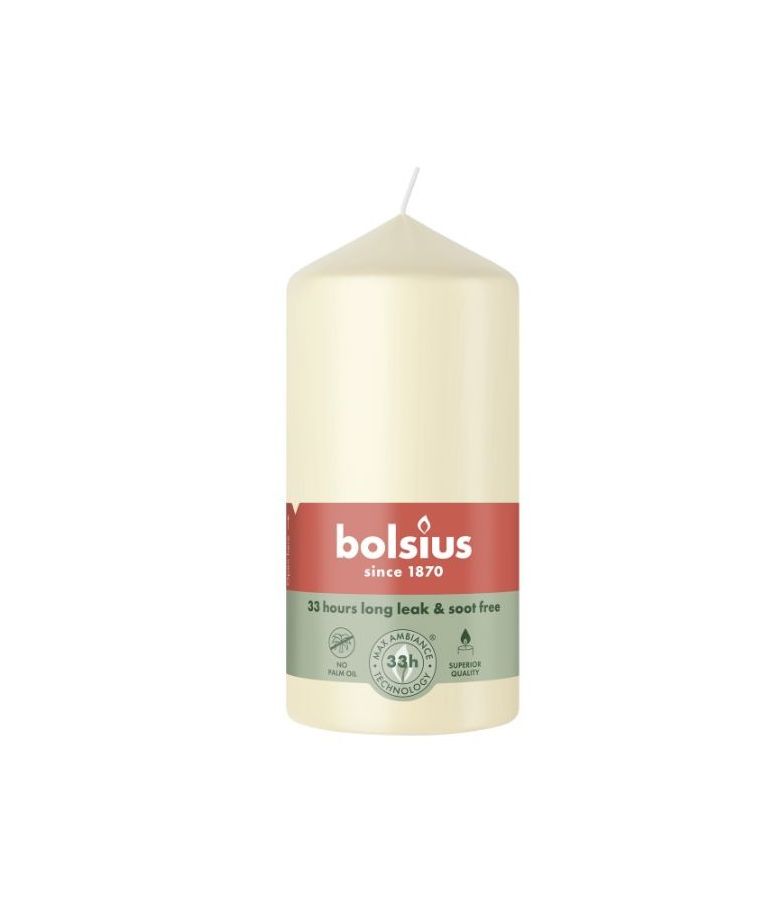 Žvakė balta koloninė BOLSIUS 5,8 × 12 cm – kokybiška klasikinio dizaino koloninė žvakė, skirta jaukiai ir elegantiškai aplinkai kurti. Pagaminta iš aukštos energijos vaško, kuris užtikrina tolygų, stabilų degimą ir ryškią liepsną. Speciali medvilninė dagtis ir apsaugotas išorinis vaško sluoksnis padeda išvengti varvėjimo bei užtikrina švarų degimą. Dėl neutralaus dizaino balta koloninė žvakė puikiai tinka stalo serviruotei, interjero dekorui, renginiams, restoranams, viešbučiams ar namų erdvėms. Patikimas pasirinkimas tiek HoReCa sektoriui, tiek namų naudojimui.