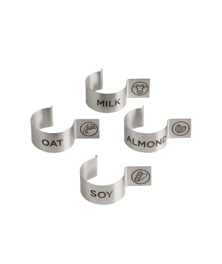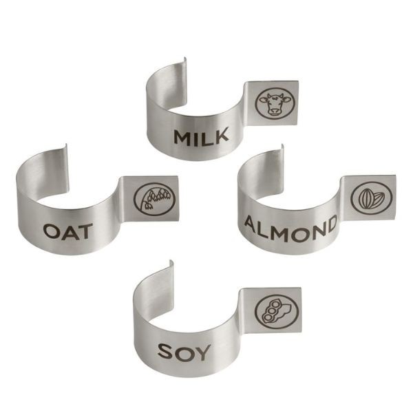 Metaliniai žymekliai pieno buteliams (4 vnt.) – tai praktiškas ir estetiškas sprendimas tiek HoReCa sektoriui, tiek namų ūkiui. Rinkinį sudaro keturios skirtingos žymės: pienui, avižų gėrimui, migdolų gėrimui ir sojų gėrimui. Pagaminti iš nerūdijančio plieno, šie žymekliai yra patvarūs, higieniški ir lengvai valomi. Jie idealiai tinka stikliniems pieno grafinams, padedant aiškiai ir tvarkingai pažymėti skirtingus gėrimus savitarnos zonose, kavinėse, viešbučių pusryčių staluose arba namų virtuvėje. Modernus ir subtilus dizainas suteikia švaros ir organizuotumo įspūdį.