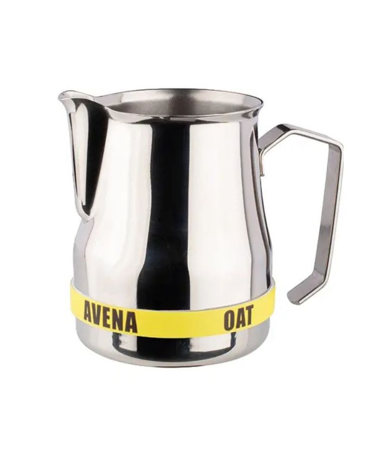 Guminis žymeklis ąsotėliui OAT – praktiškas sprendimas augalinio pieno ar kitų gėrimų atpažinimui kavos baruose ir virtuvėse. Geltonos spalvos žymeklis su aiškiu „OAT“ užrašu padeda greitai ir tiksliai identifikuoti avižų gėrimą, išvengiant klaidų ruošiant kavą ar kitus gėrimus. Elastinga guminė medžiaga lengvai uždedama ir tvirtai laikosi ant metalinių ąsotėlių. Puikiai tinka intensyviam naudojimui HoReCa sektoriuje bei namų kavos kampeliuose.